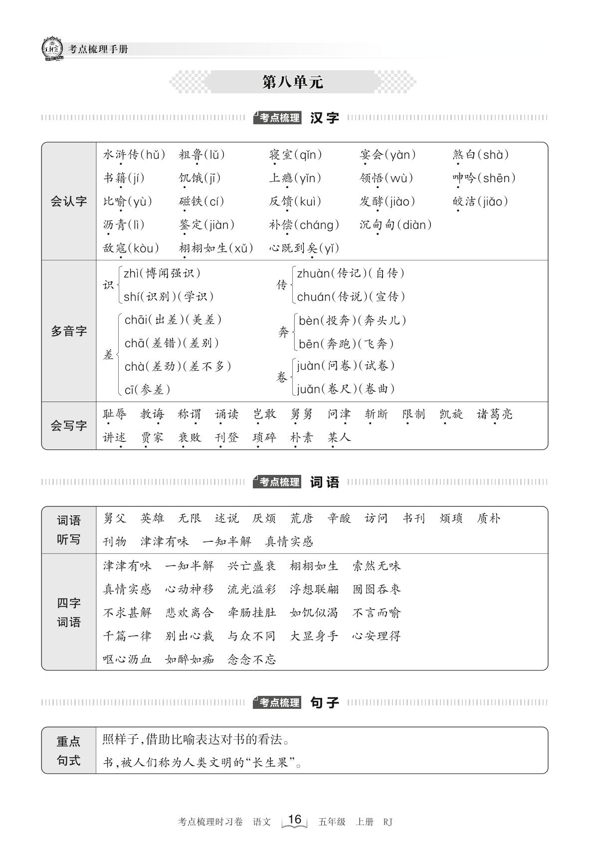 2022上册五年级语文人教版 考点梳理手册——第八单元