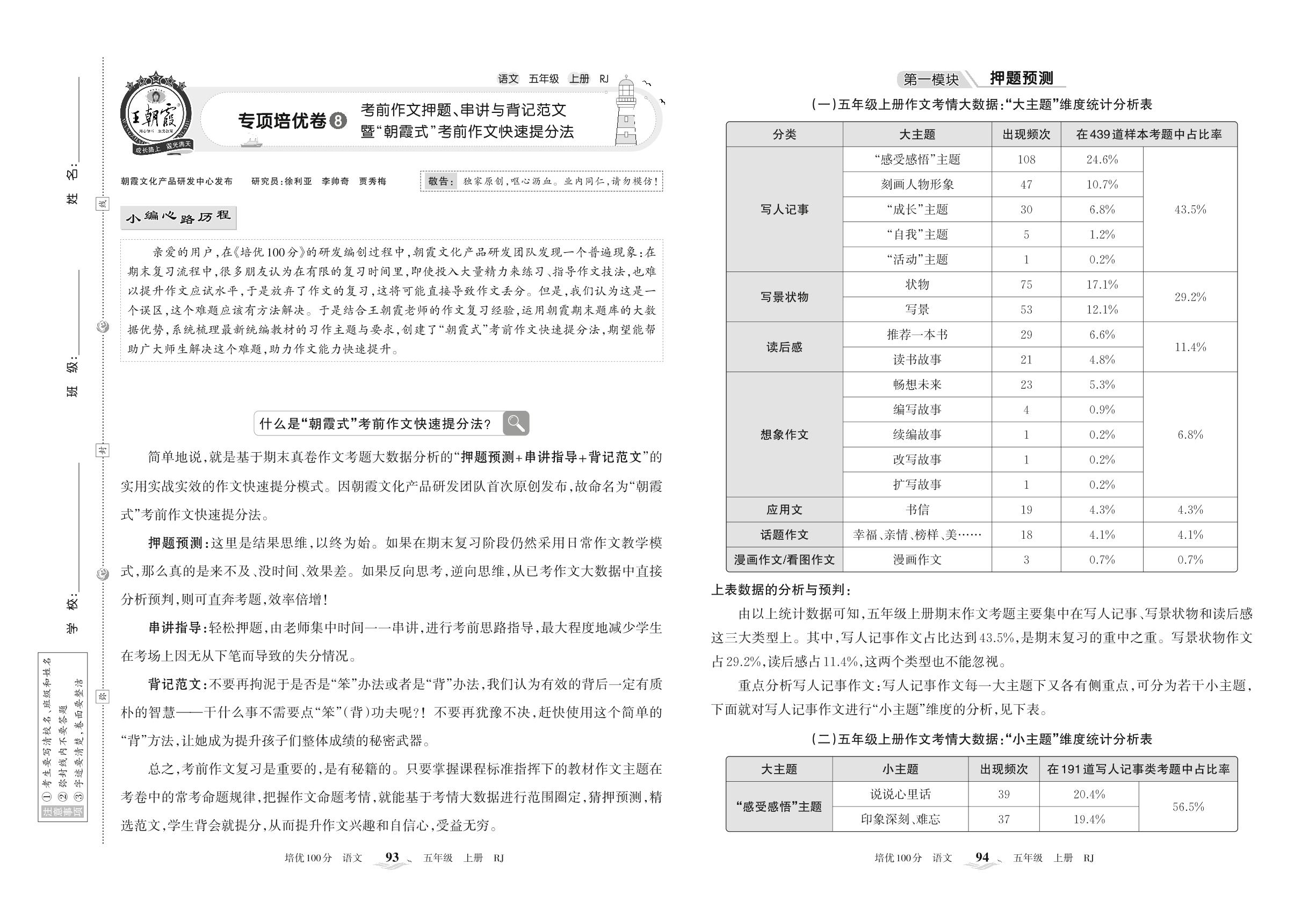 2022上册五年级语文人教版 专项培优卷8 考前作文押题、串讲与背记范文暨“朝霞式”考前作文快速提分法