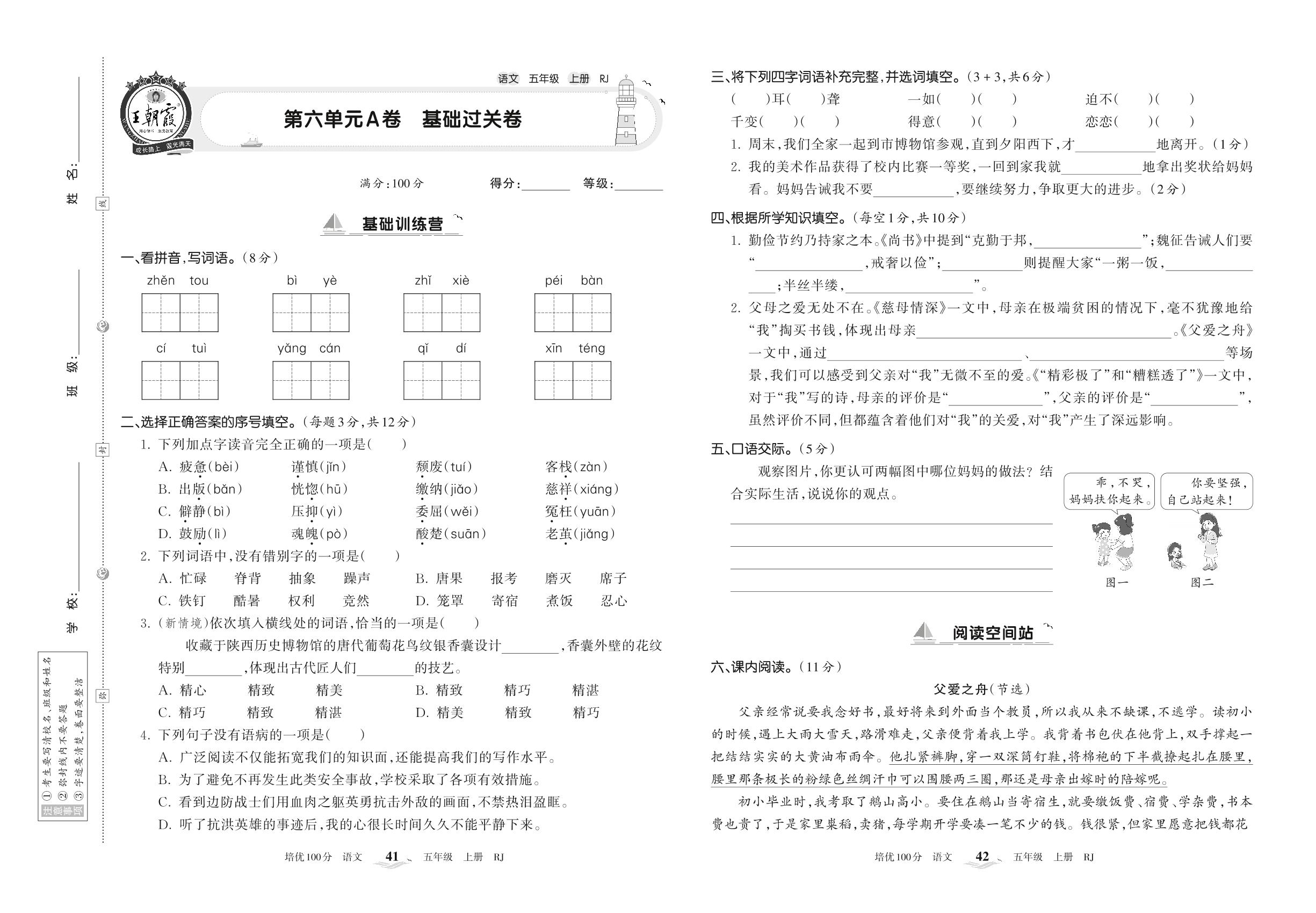2022上册五年级语文人教版 第六单元A卷 基础过关卷