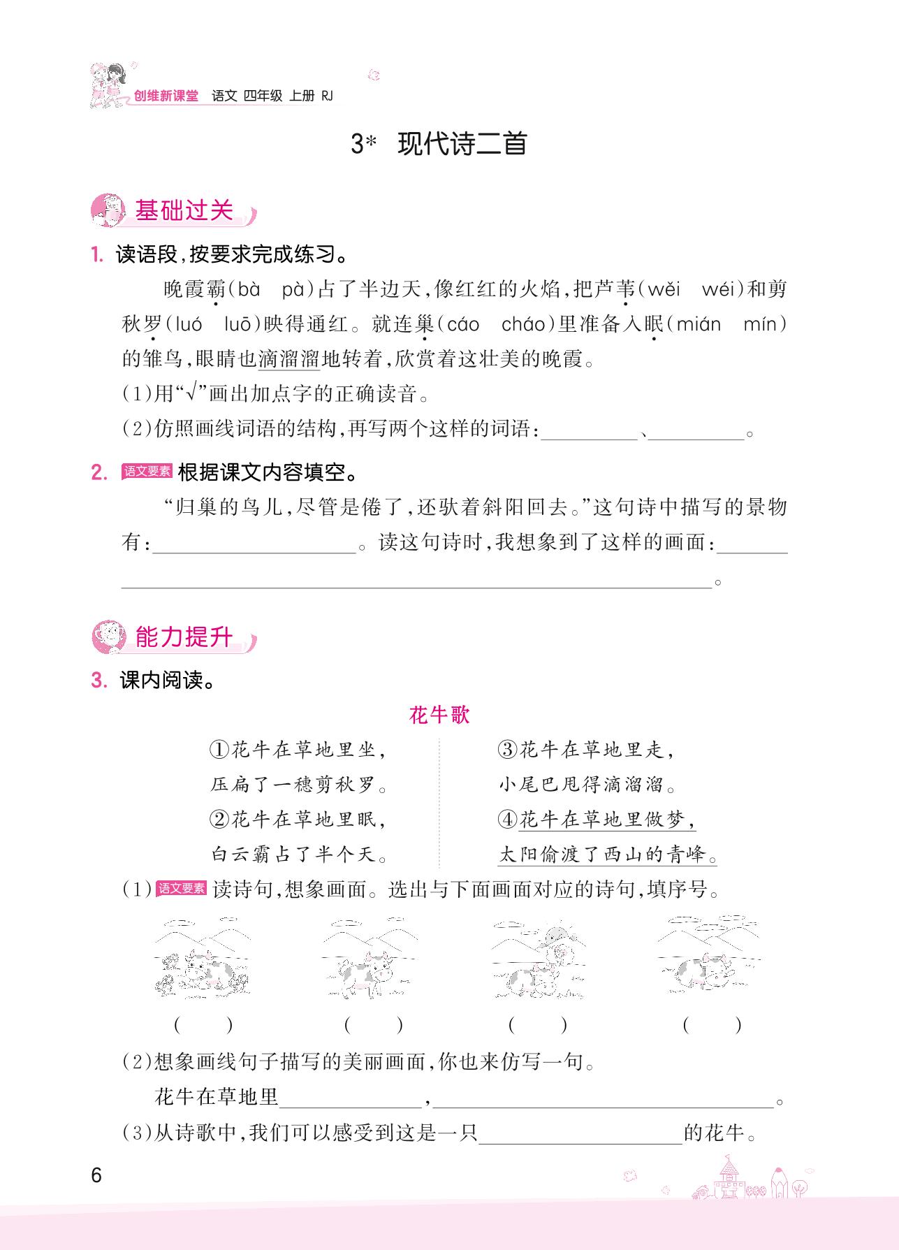 2022上册四年级语文人教版 第一单元——3 现代诗二首