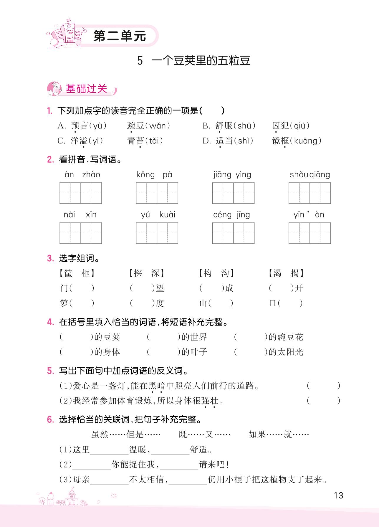 2022上册四年级语文人教版 第二单元——5 一个豆荚里的五粒豆