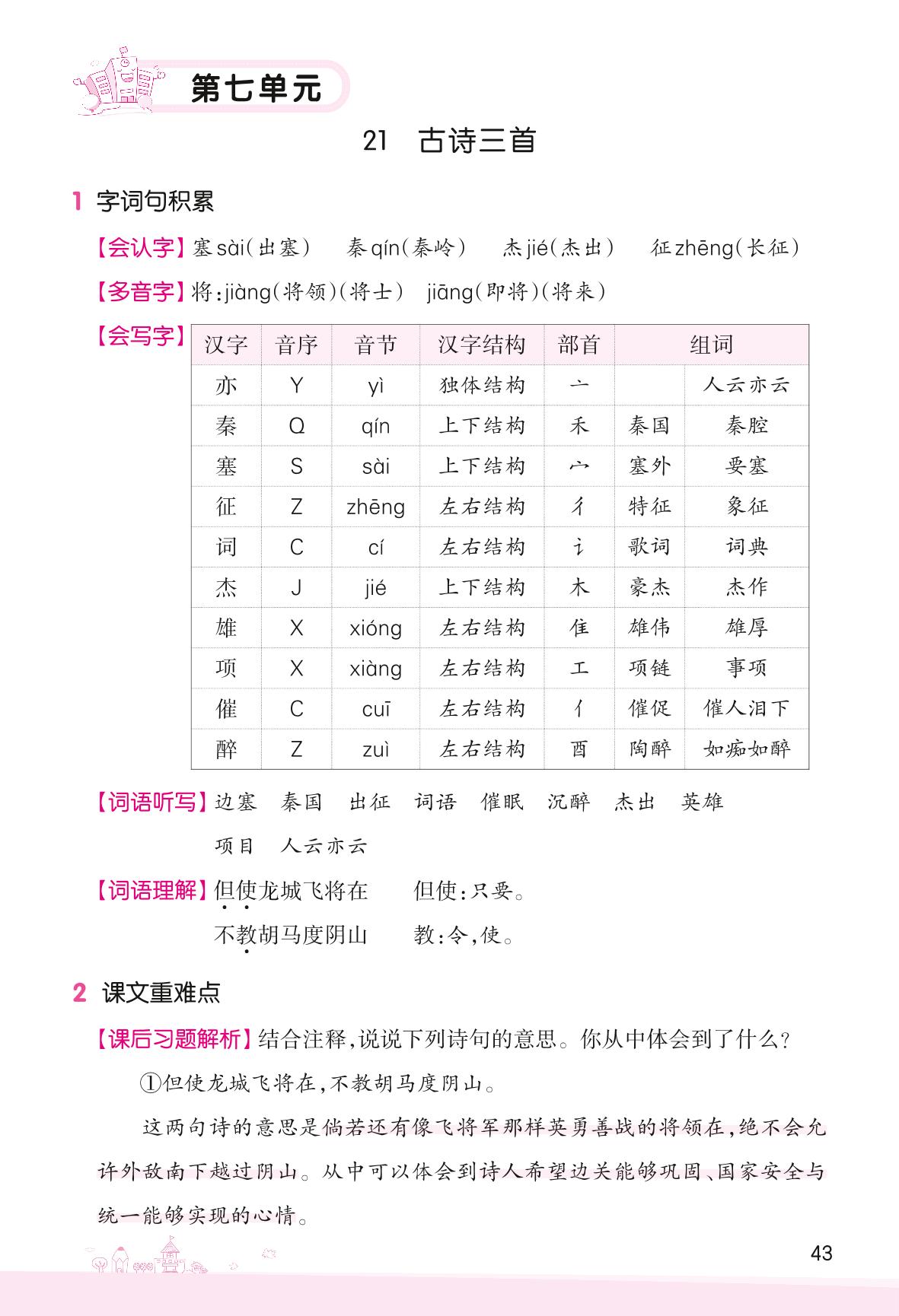 2022上册四年级语文人教版 助学手册 第七单元——21 古诗三首