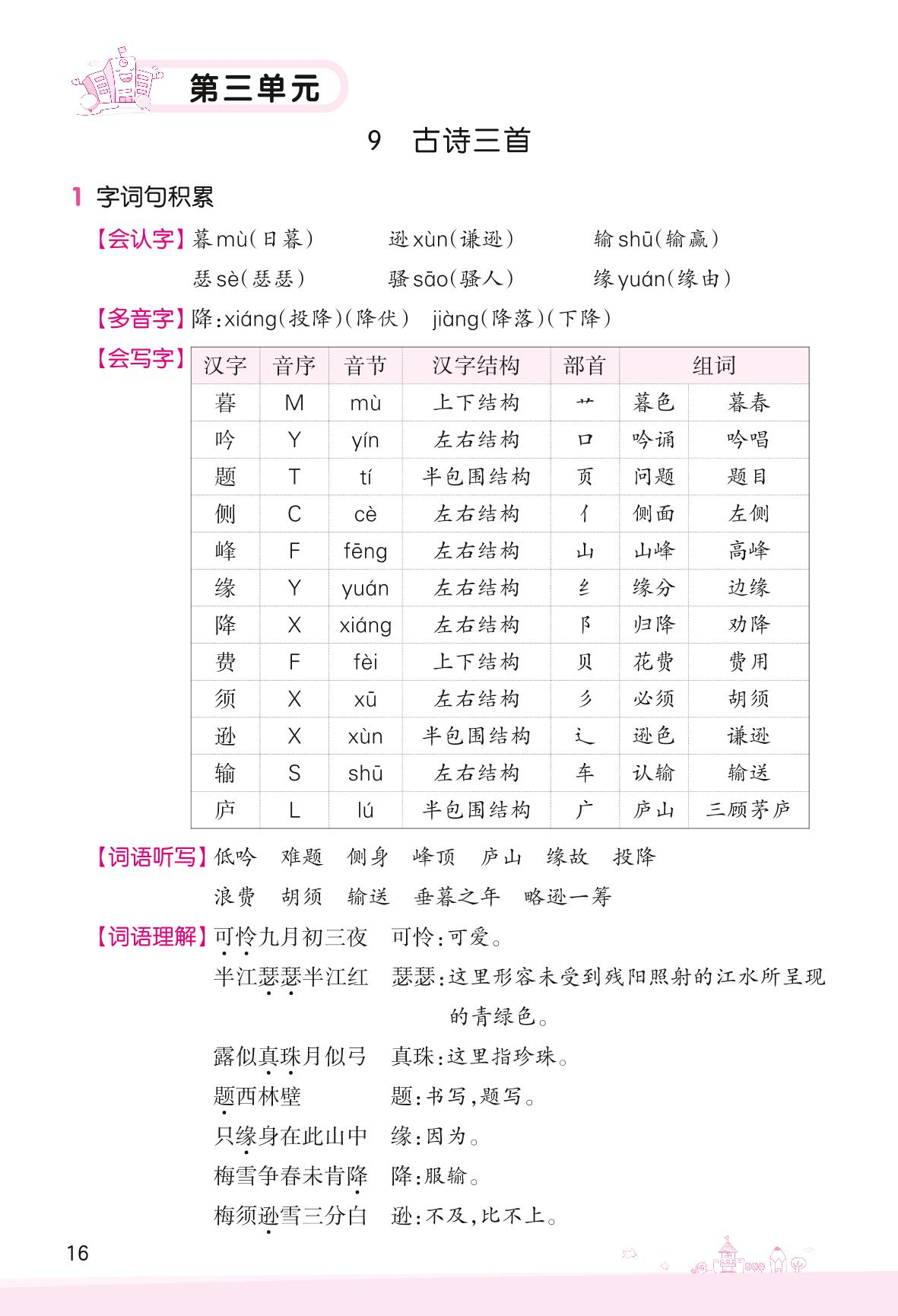 2022上册四年级语文人教版 助学手册 第三单元——9 古诗三首