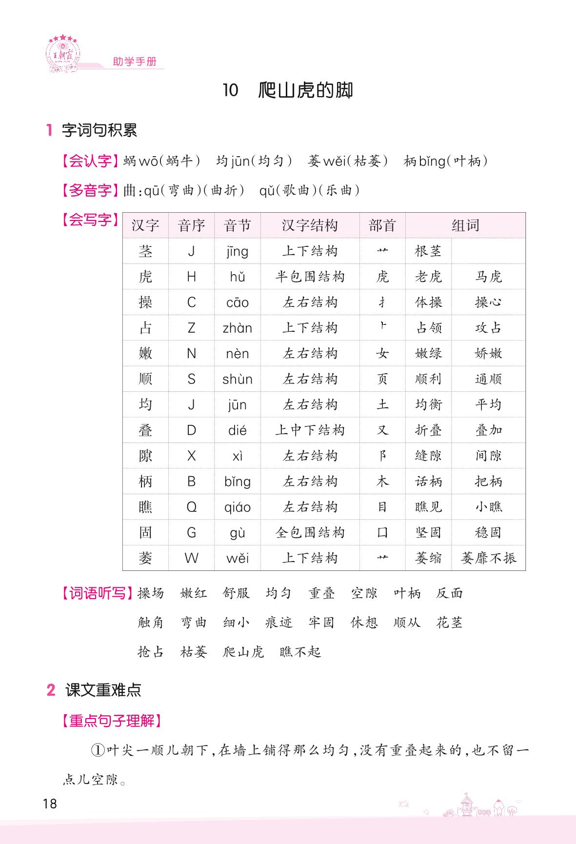 2022上册四年级语文人教版 助学手册 第三单元——10 爬山虎的脚