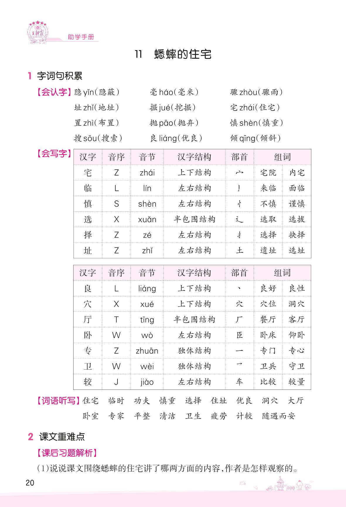 2022上册四年级语文人教版 助学手册 第三单元——11 蟋蟀的住宅