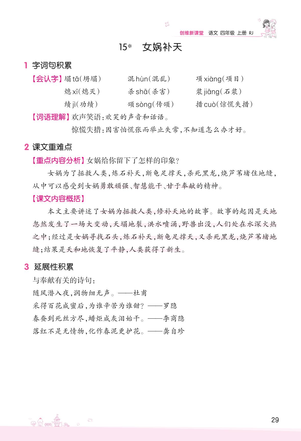2022上册四年级语文人教版 助学手册 第四单元——15 女娲补天