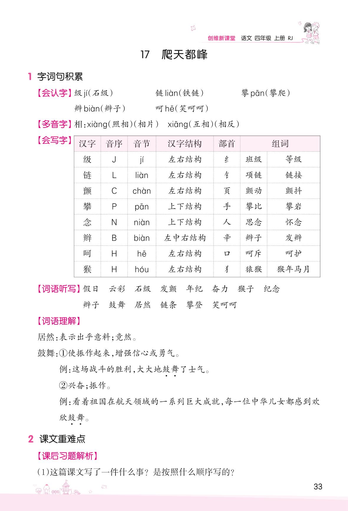 2022上册四年级语文人教版 助学手册 第五单元——17 爬天都峰