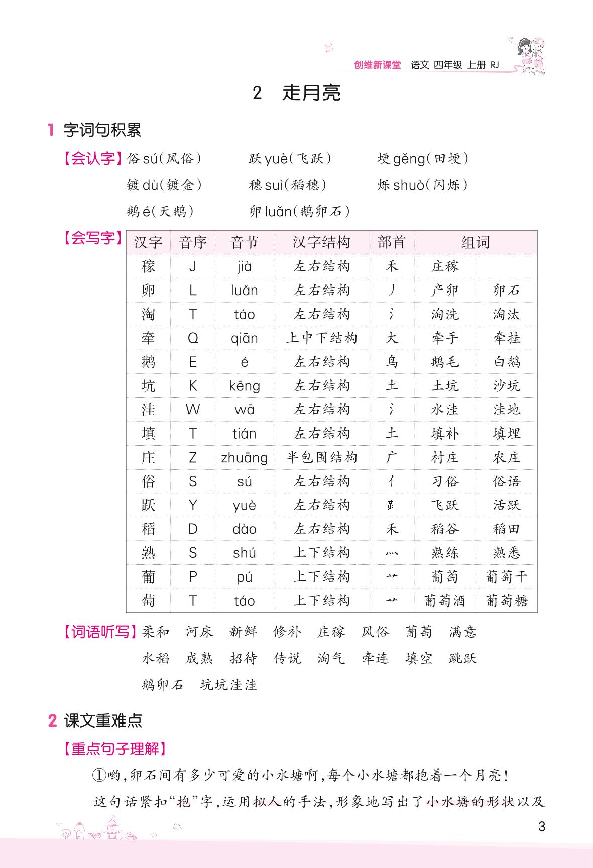 2022上册四年级语文人教版 助学手册 第一单元——2 走月亮