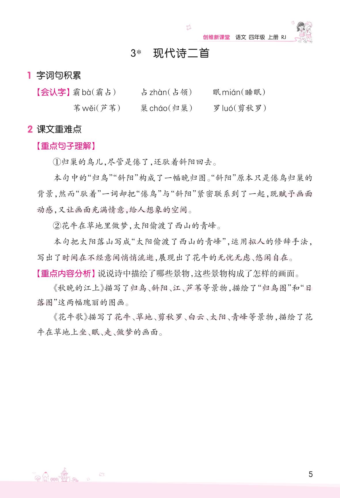 2022上册四年级语文人教版 助学手册 第一单元——3 现代诗二首