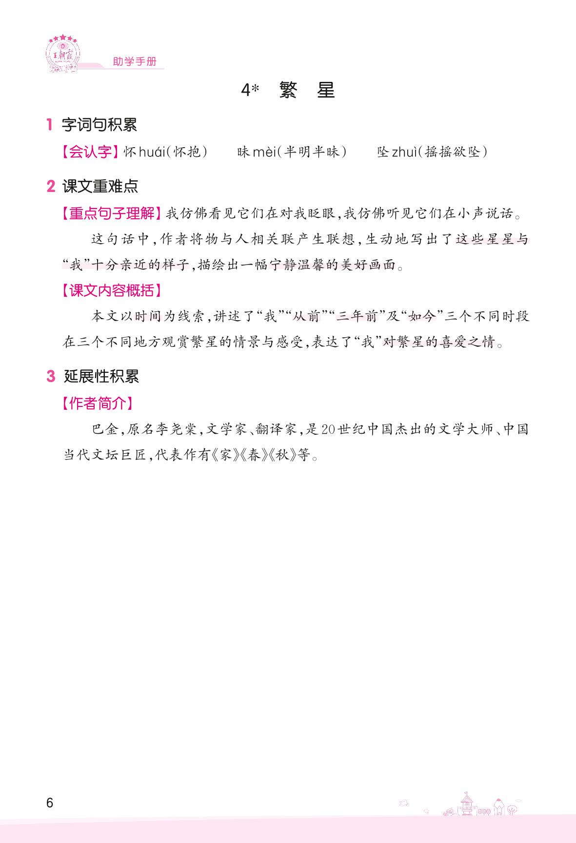 2022上册四年级语文人教版 助学手册 第一单元——4 繁星