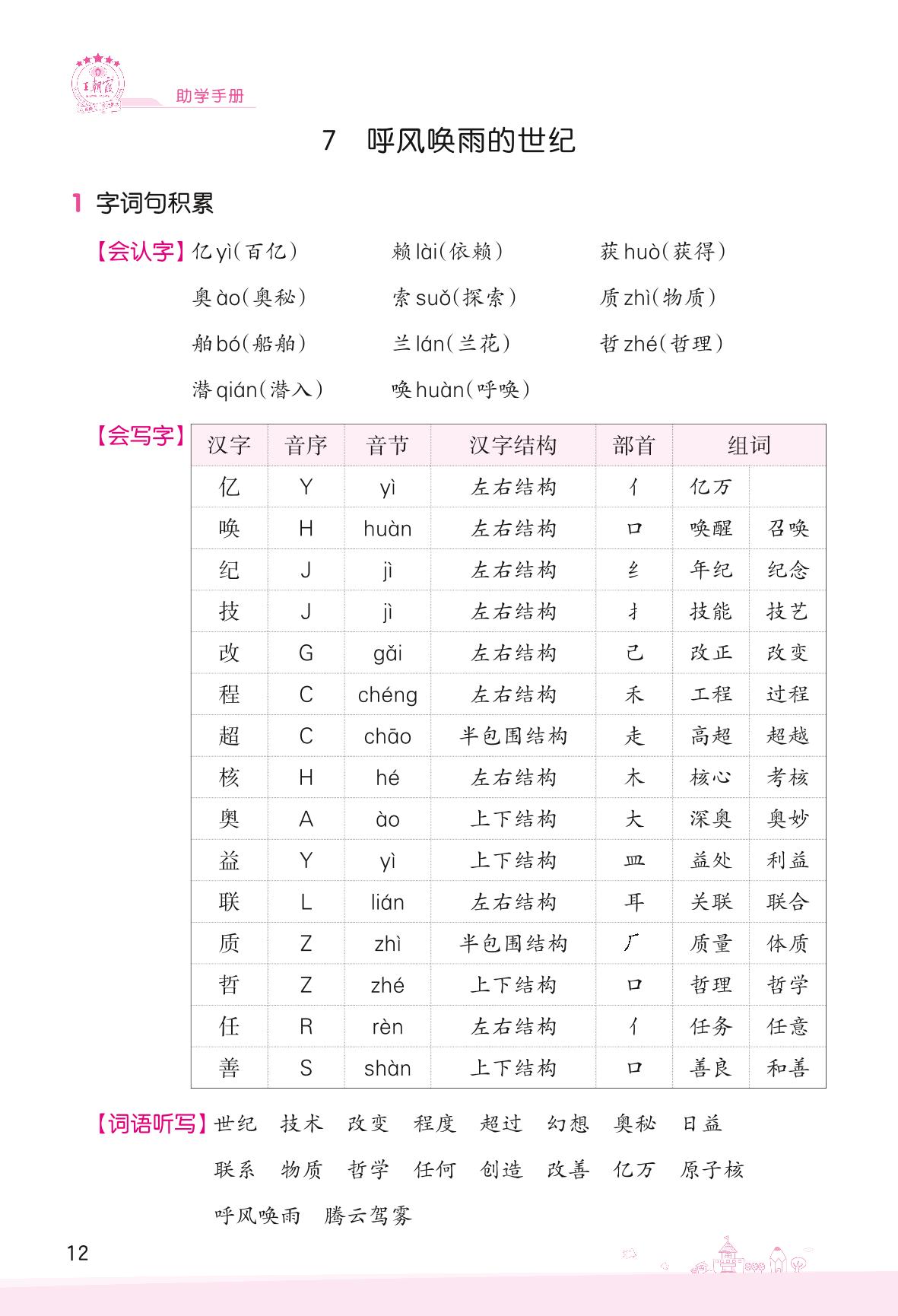2022上册四年级语文人教版 助学手册 第二单元——7 呼风唤雨的世纪