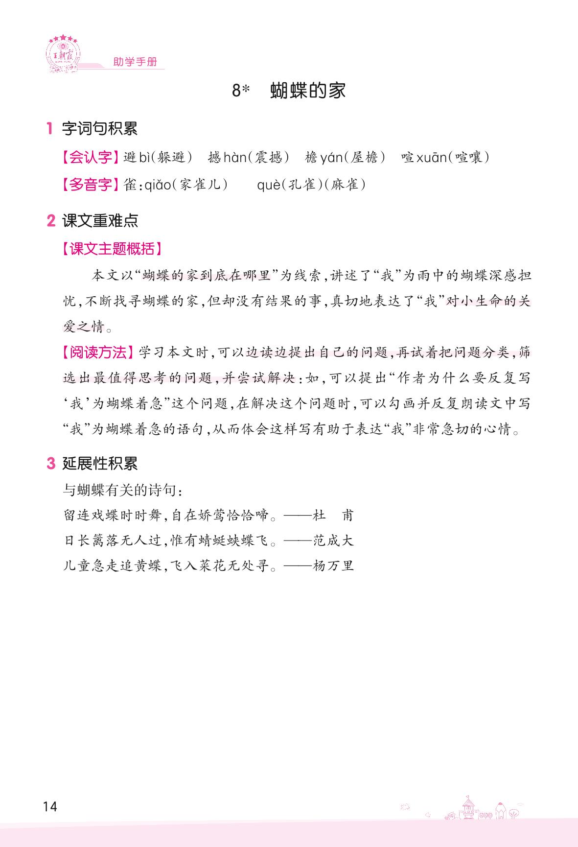 2022上册四年级语文人教版 助学手册 第二单元——8 蝴蝶的家