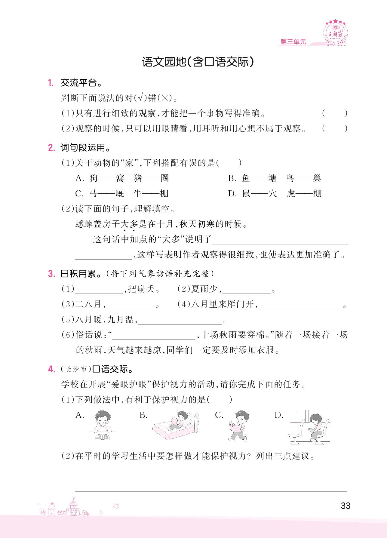 2022上册四年级语文人教版 第三单元——语文园地