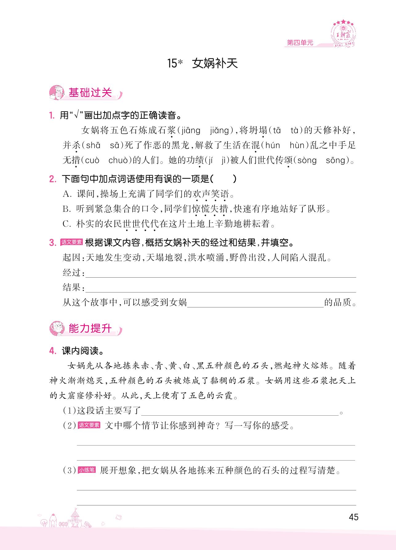 2022上册四年级语文人教版 第四单元——15 女娲补天