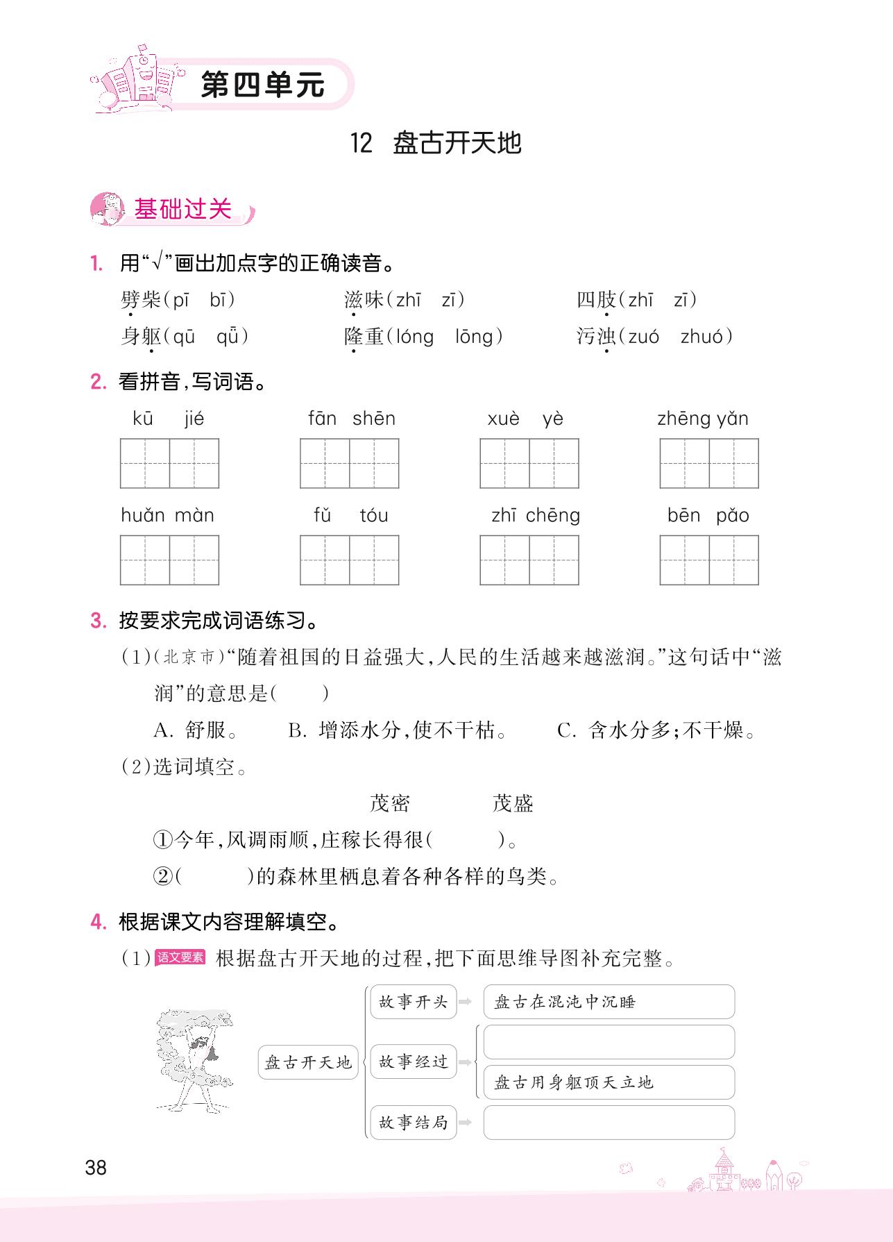 2022上册四年级语文人教版 第四单元——12 盘古开天地