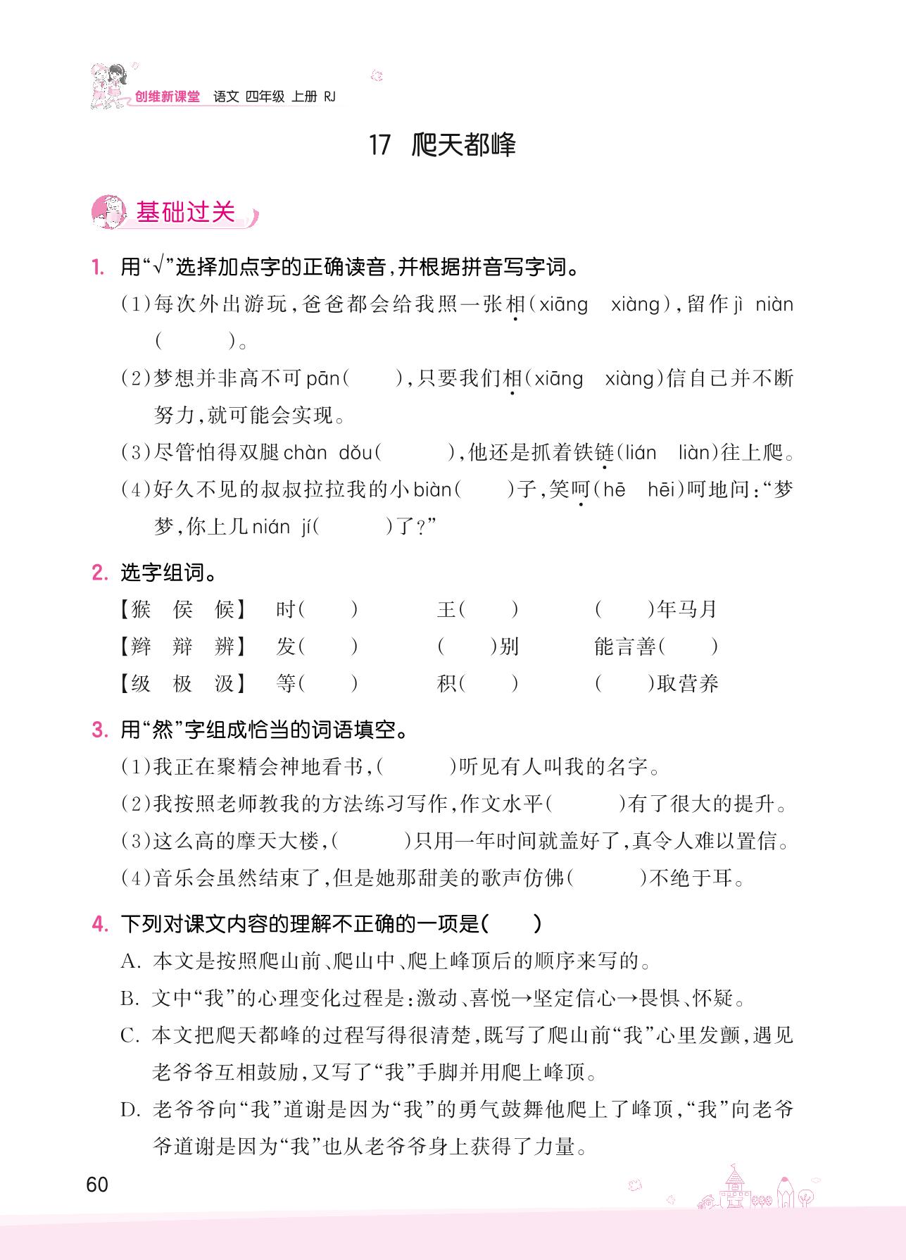 2022上册四年级语文人教版 第五单元——17 爬天都峰