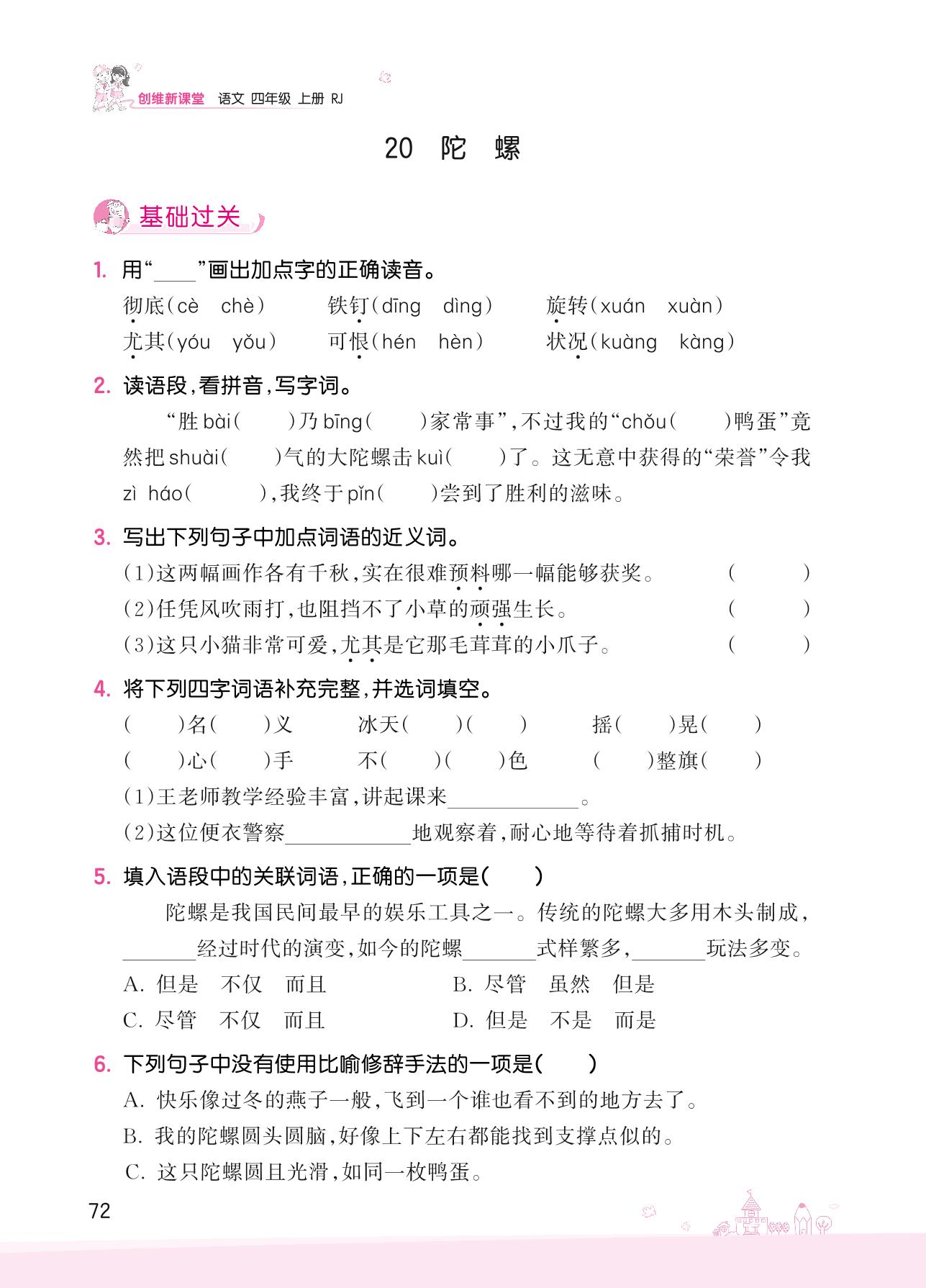 2022上册四年级语文人教版 第六单元——20 陀螺
