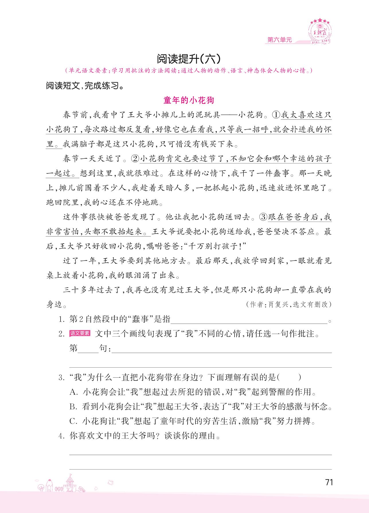 2022上册四年级语文人教版 第六单元——阅读提升(六)
