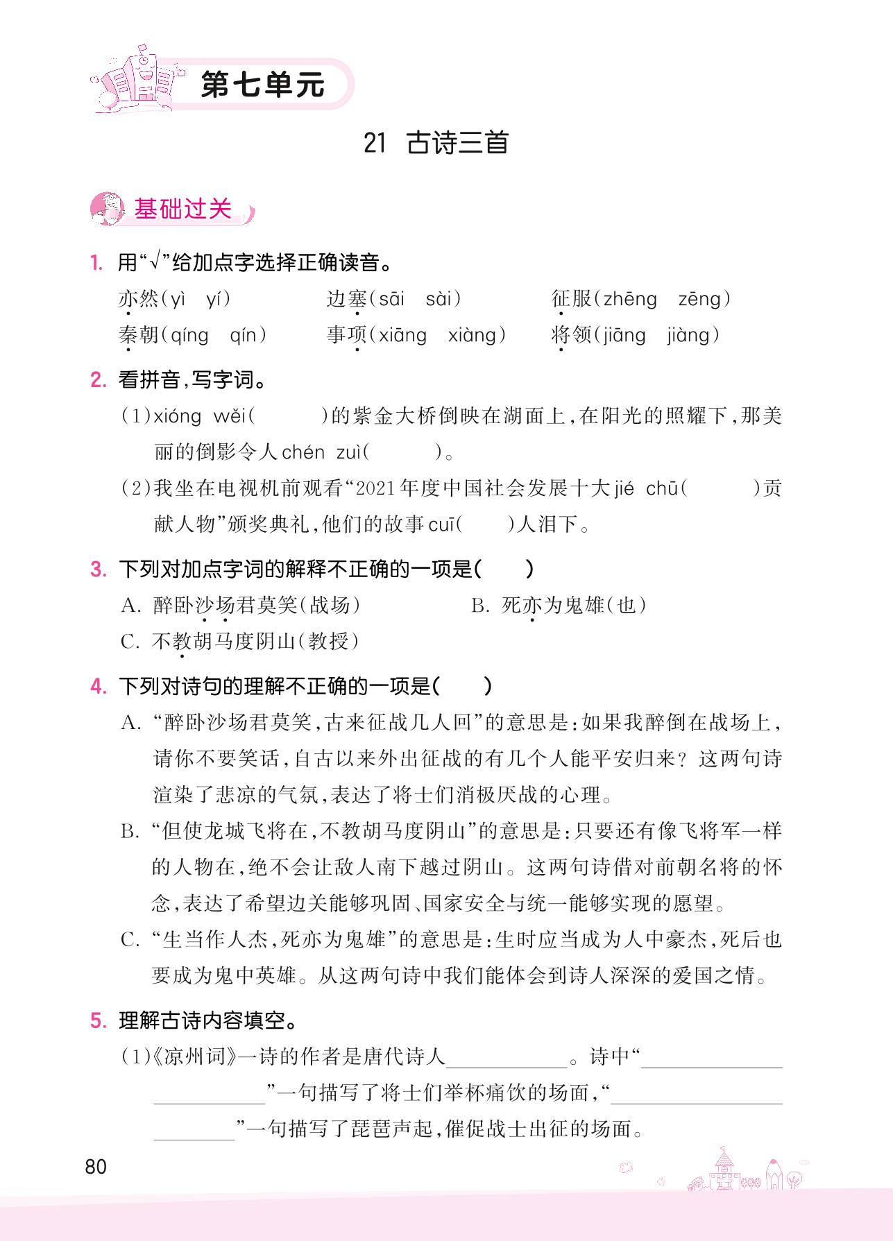 2022上册四年级语文人教版 第七单元——21 古诗三首