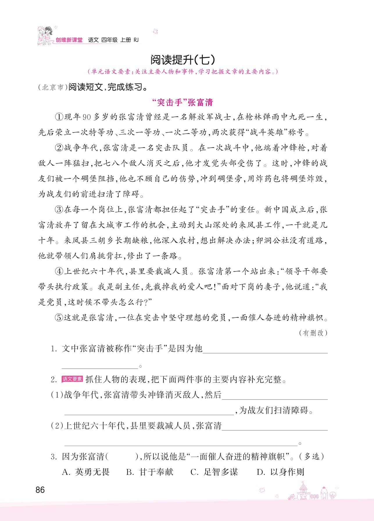 2022上册四年级语文人教版 第七单元——阅读提升(七)