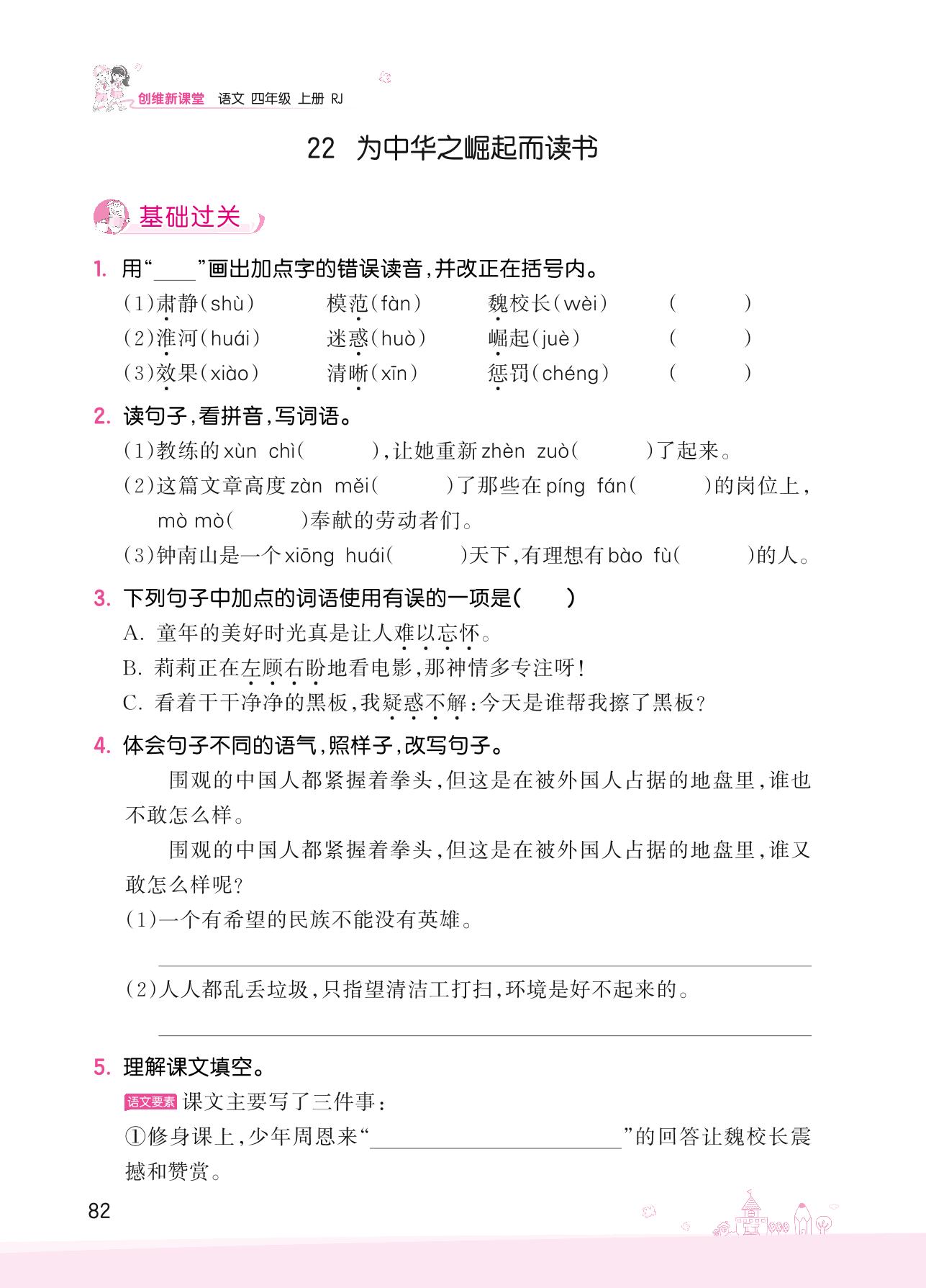 2022上册四年级语文人教版 第七单元——22 为中华之崛起而读书