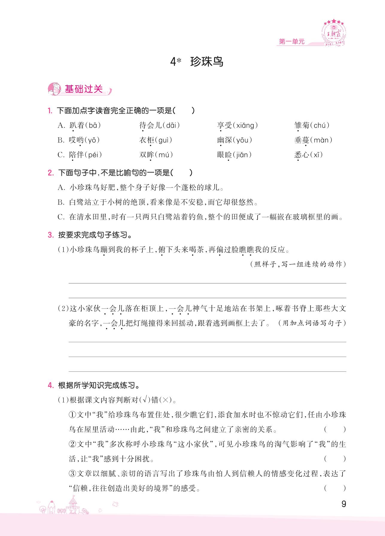 2022上册五年级语文人教版 第一单元——4 珍珠鸟