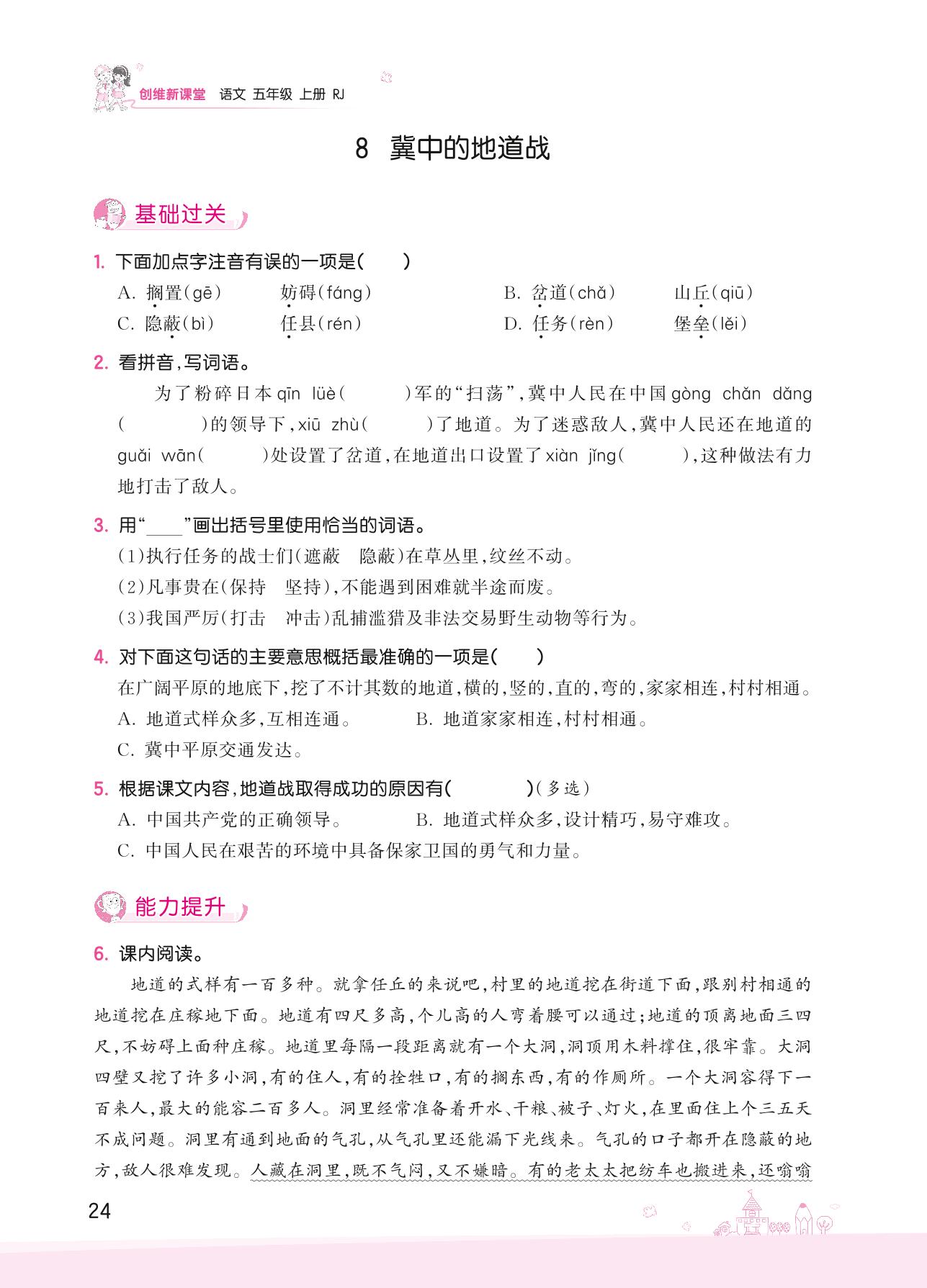 2022上册五年级语文人教版 第二单元——8 冀中的地道战