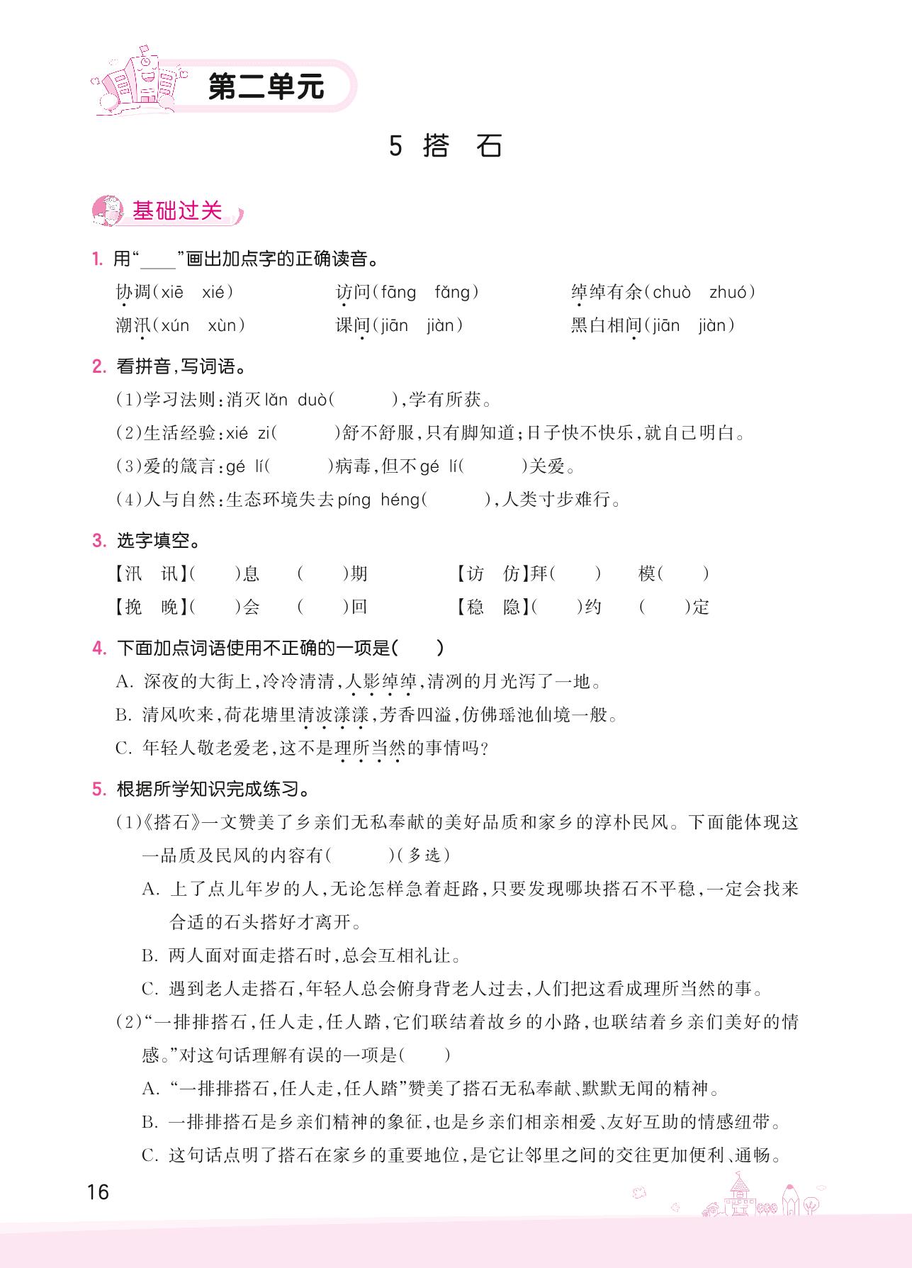 2022上册五年级语文人教版 第二单元——5 搭石
