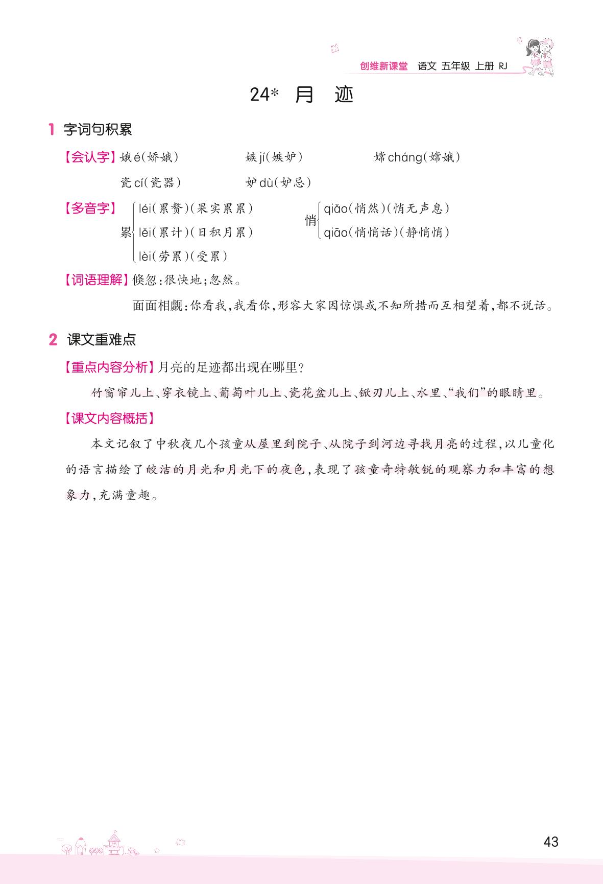 2022上册五年级语文人教版 助学手册 第七单元——24 月迹