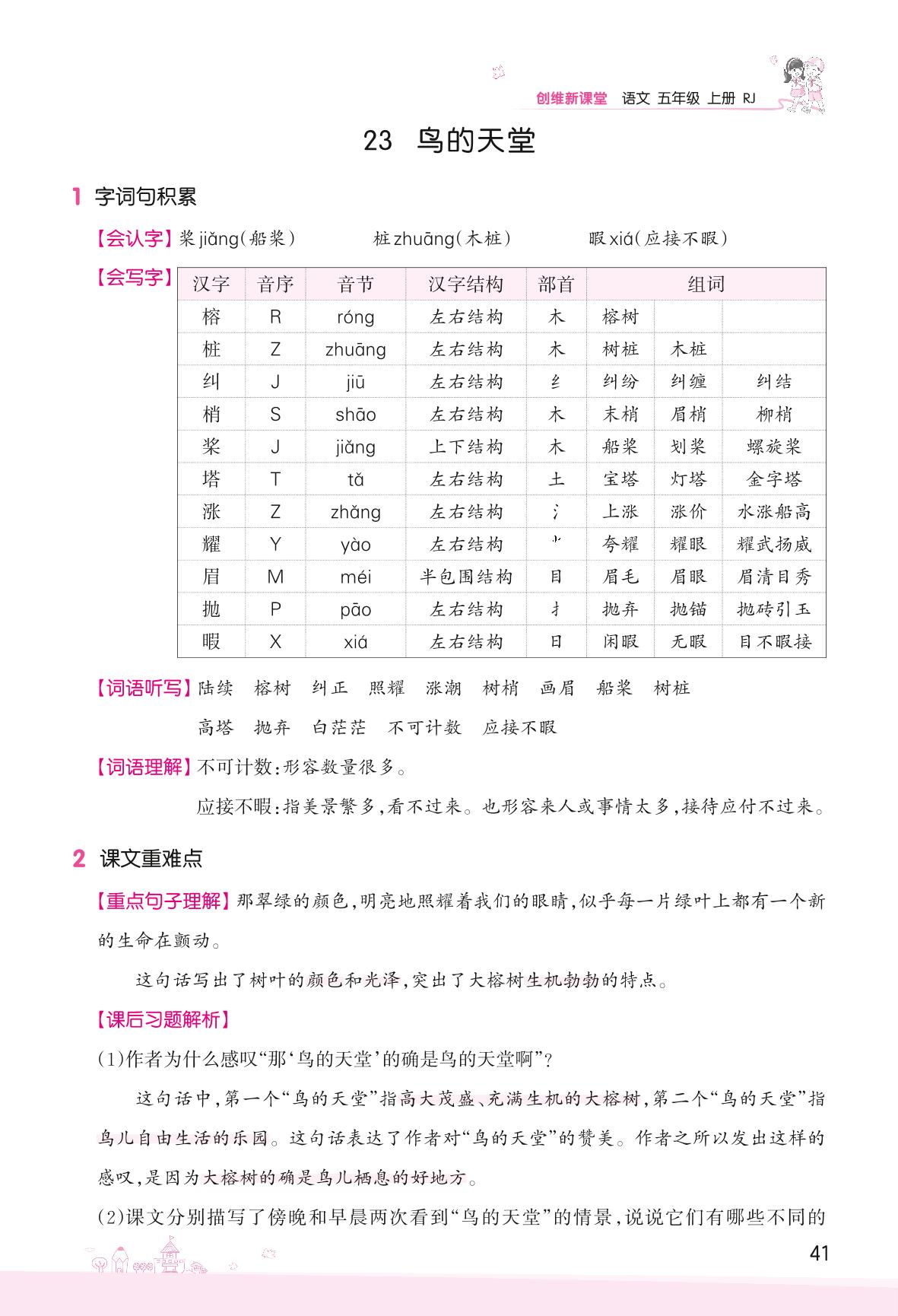 2022上册五年级语文人教版 助学手册 第七单元——23 鸟的天堂