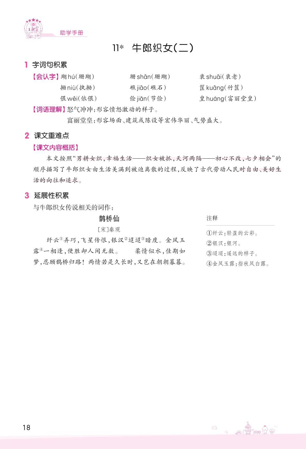 2022上册五年级语文人教版 助学手册 第三单元——11 牛郎织女(二)