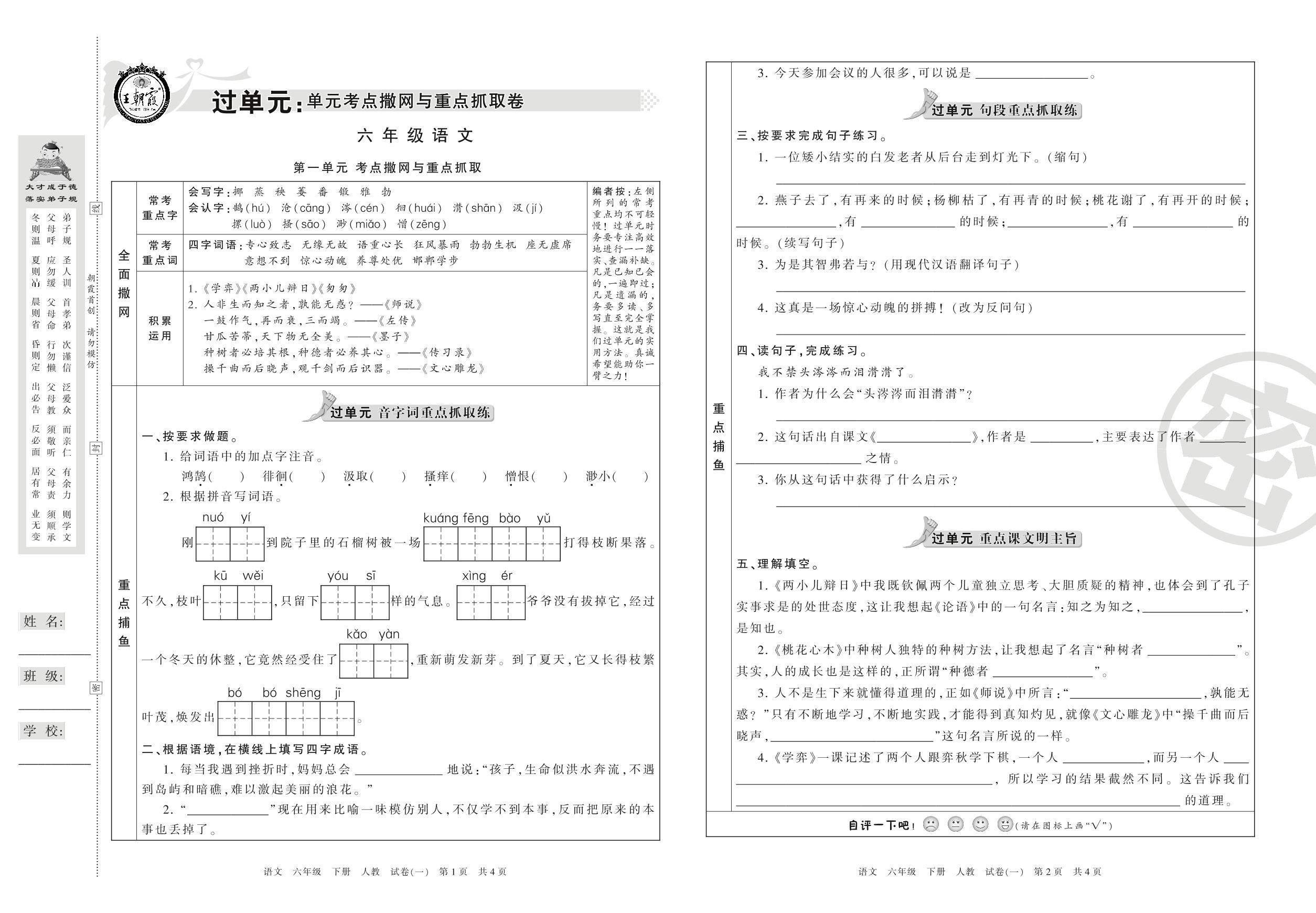 王朝霞期末过单元六年级下册语文(人教版)_R21080284314【1】