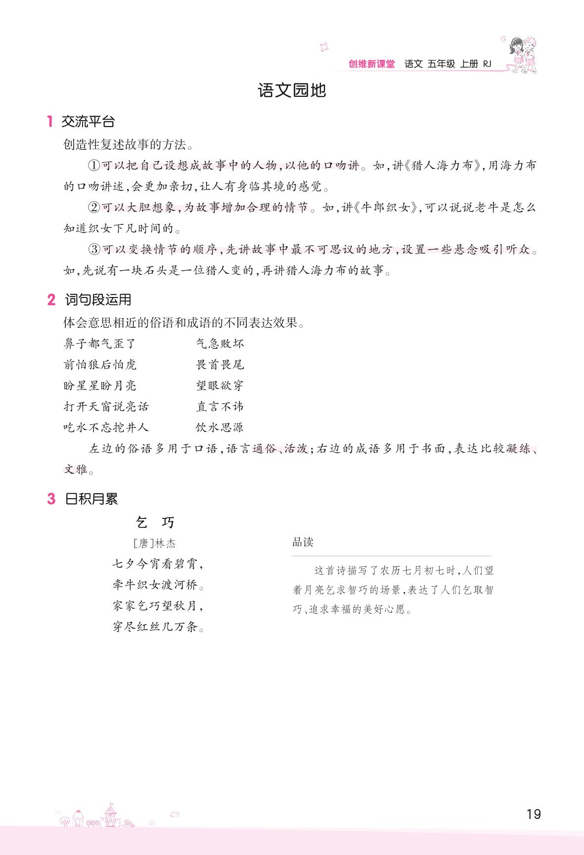 2022上册五年级语文人教版 助学手册 第三单元——语文园地