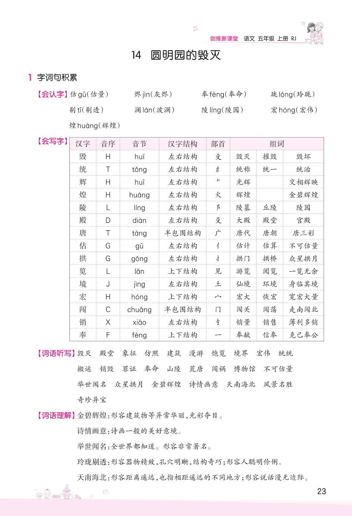 2022上册五年级语文人教版 助学手册 第四单元——14 圆明园的毁灭