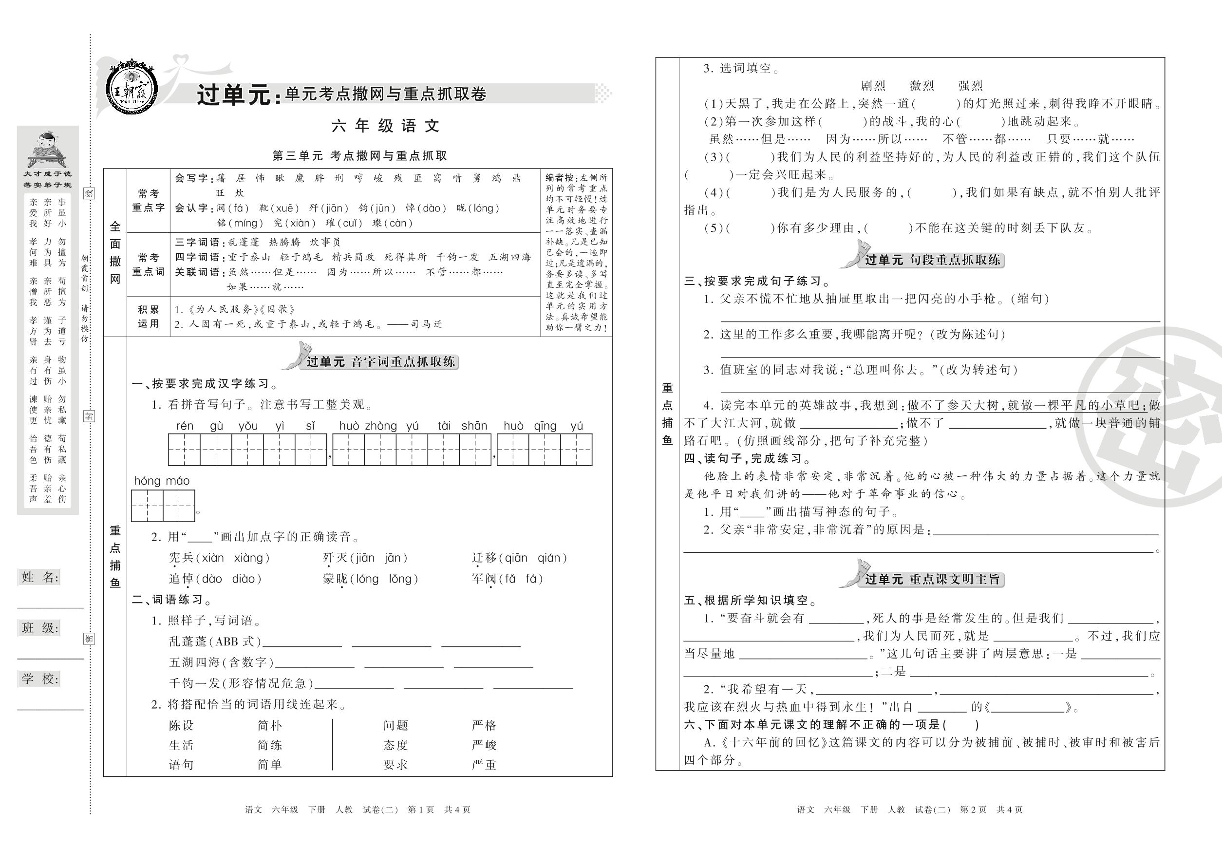 六年级语文人教版下册单元卷