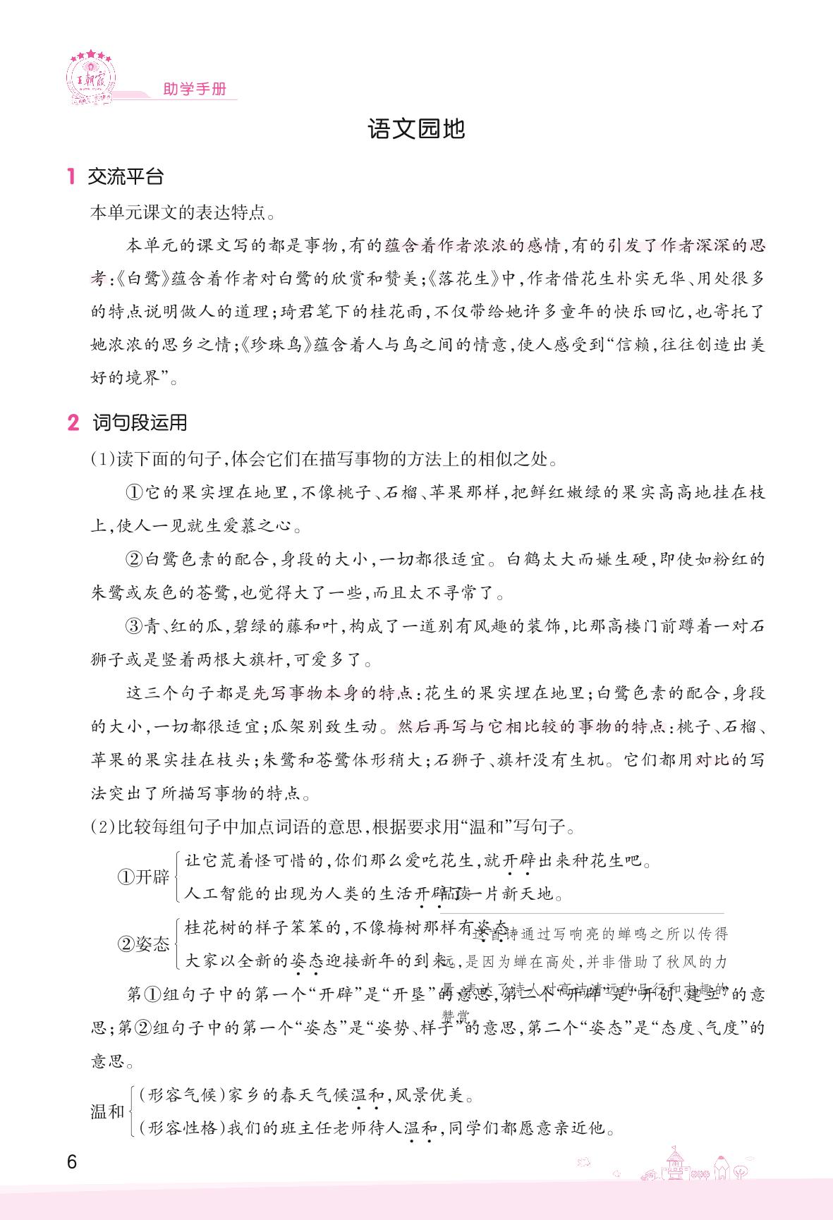 2022上册五年级语文人教版 助学手册 第一单元——语文园地