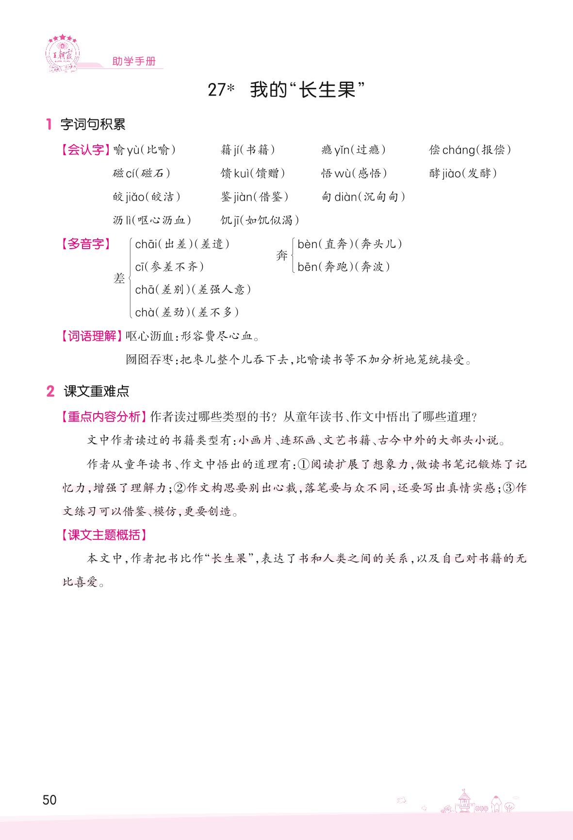 2022上册五年级语文人教版 助学手册 第八单元——27 我的“长生果”