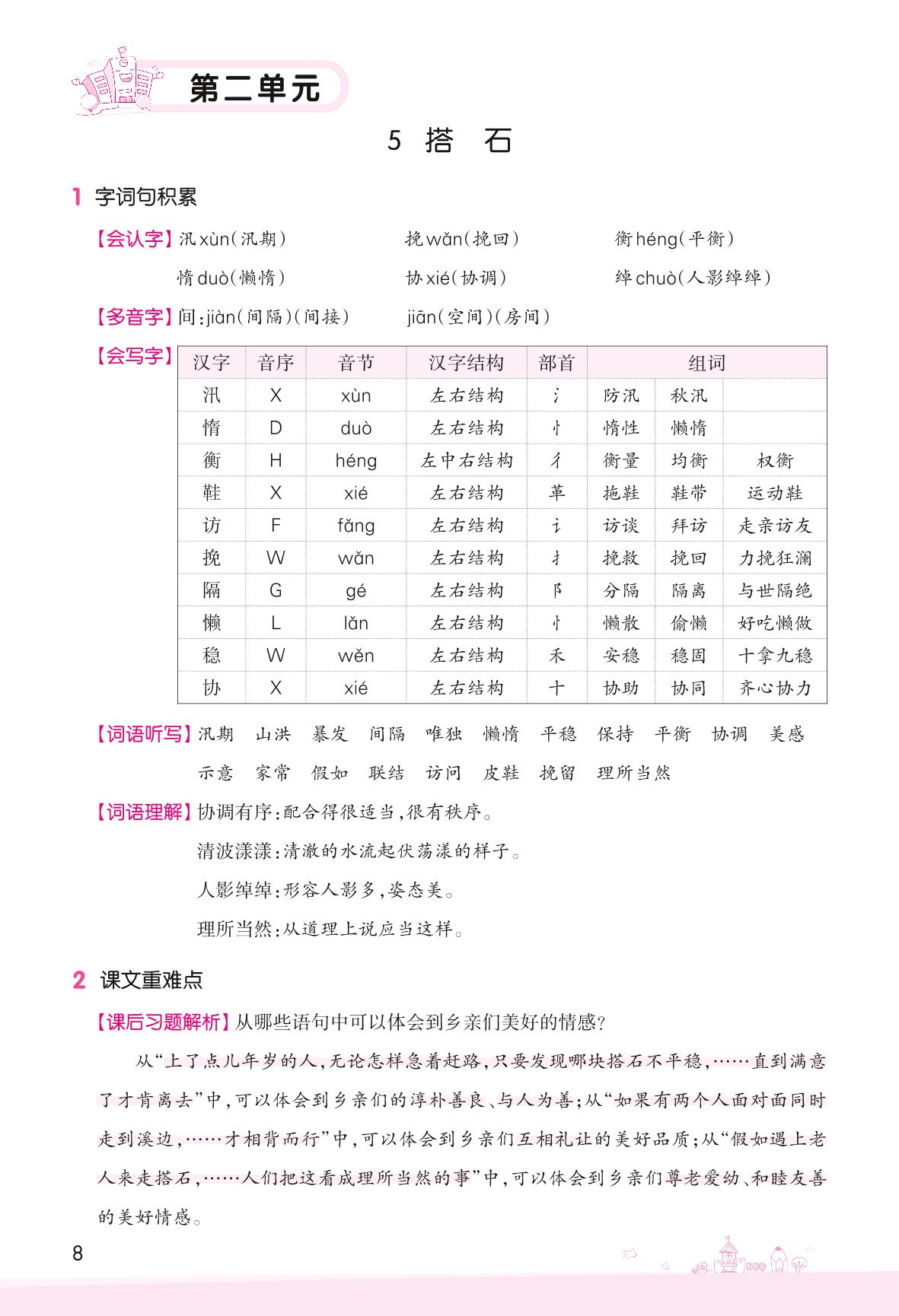 2022上册五年级语文人教版 助学手册 第二单元——5 搭石