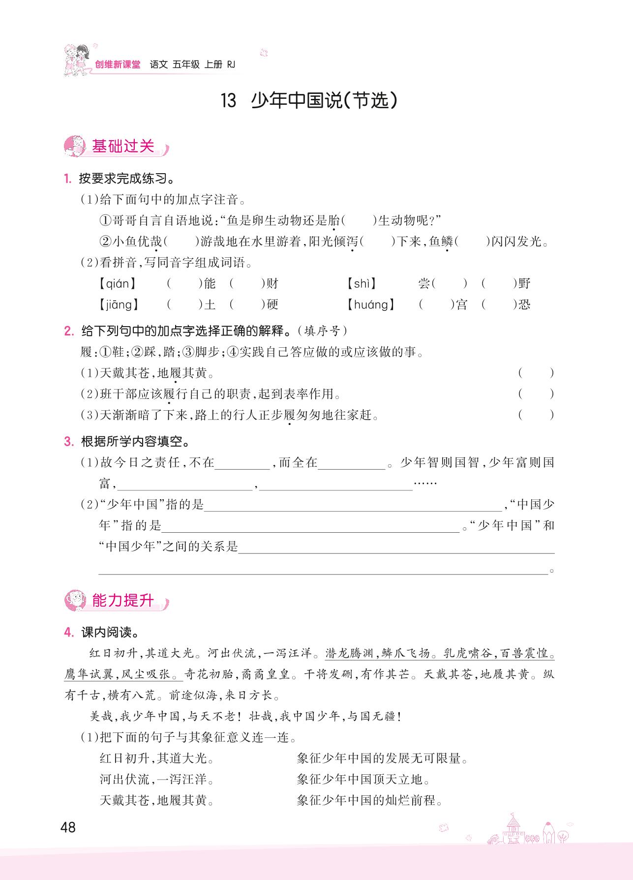 2022上册五年级语文人教版 第四单元——13 少年中国说(节选)