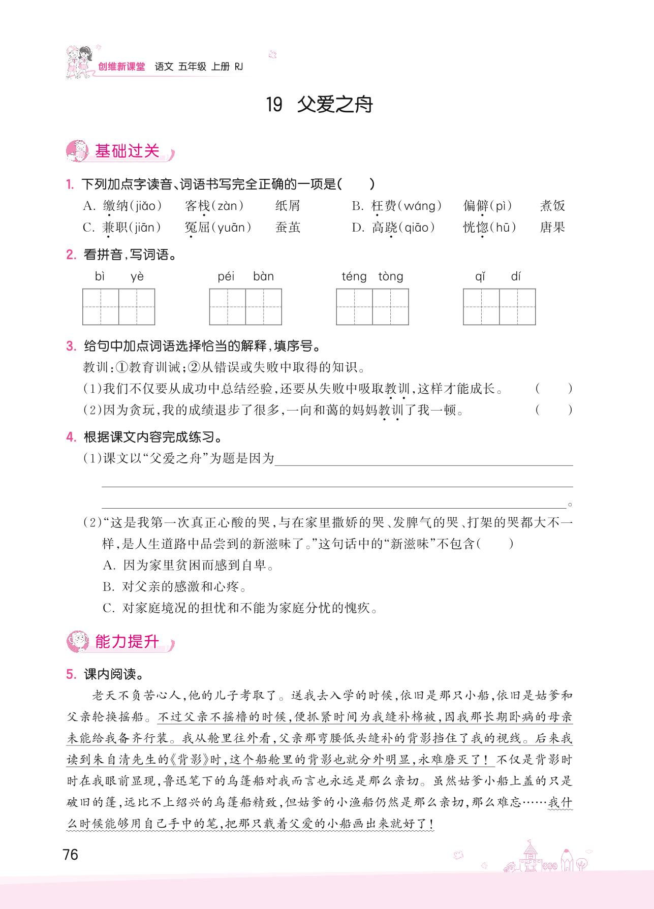 2022上册五年级语文人教版 第六单元——19 父爱之舟