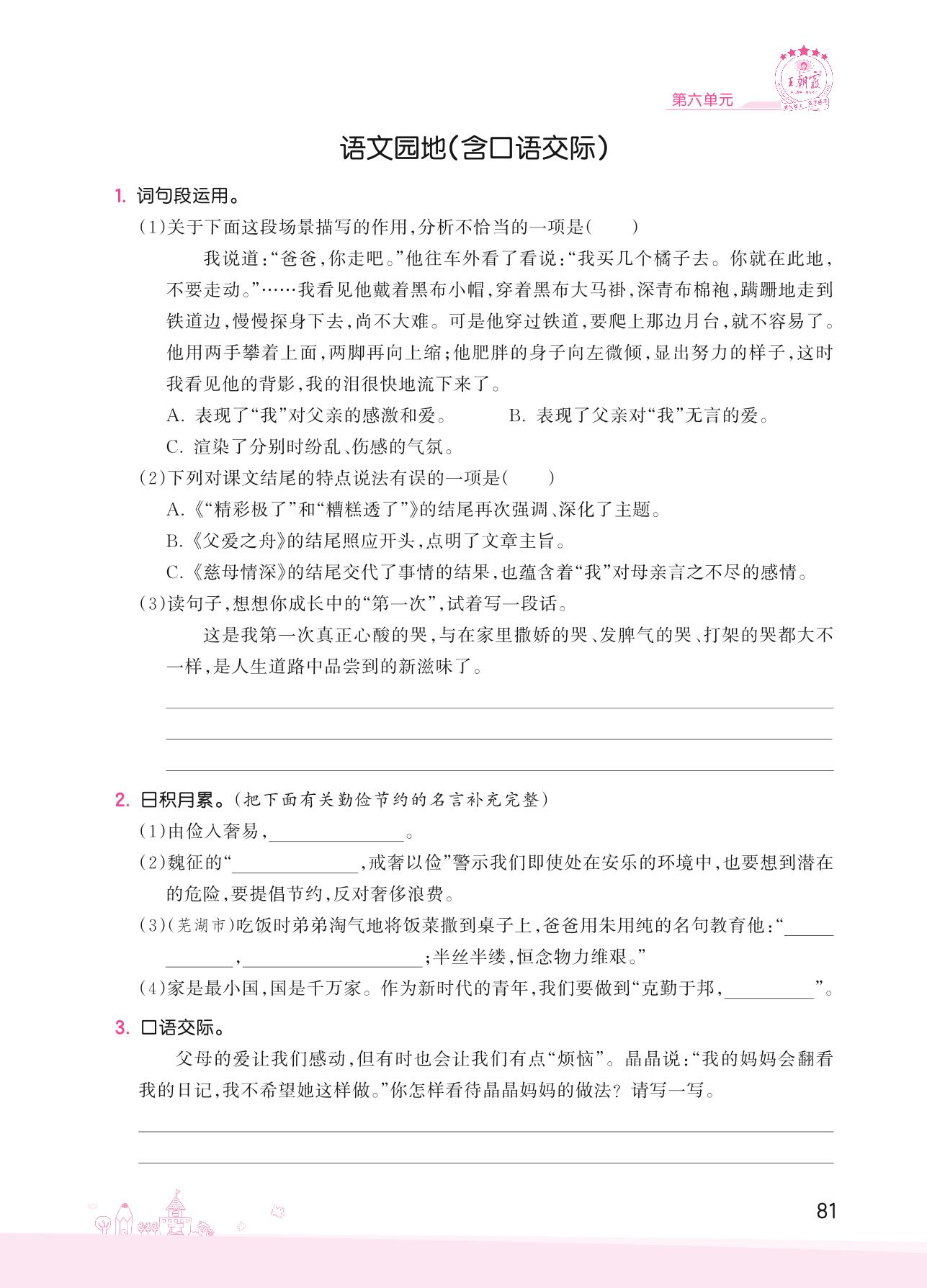 2022上册五年级语文人教版 第六单元——语文园地