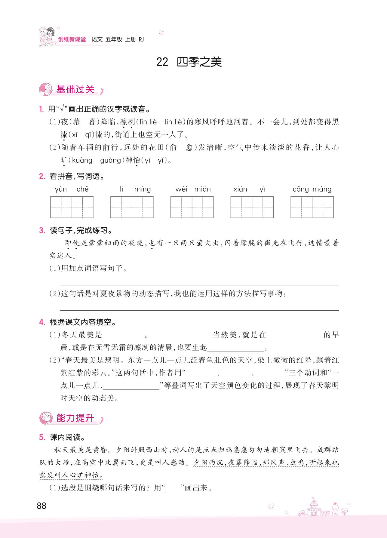2022上册五年级语文人教版 第七单元——22 四季之美