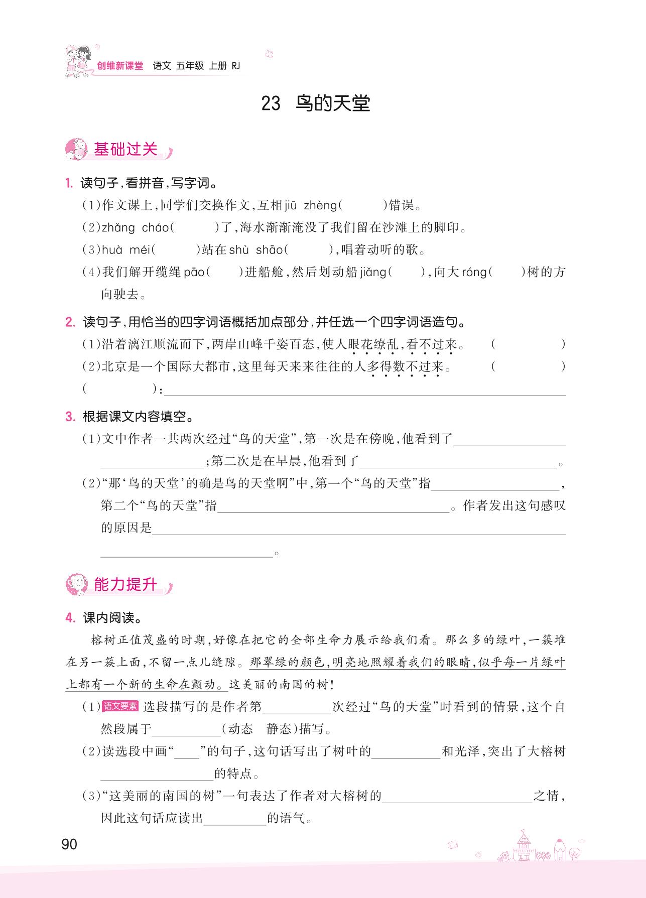 2022上册五年级语文人教版 第七单元——23 鸟的天堂