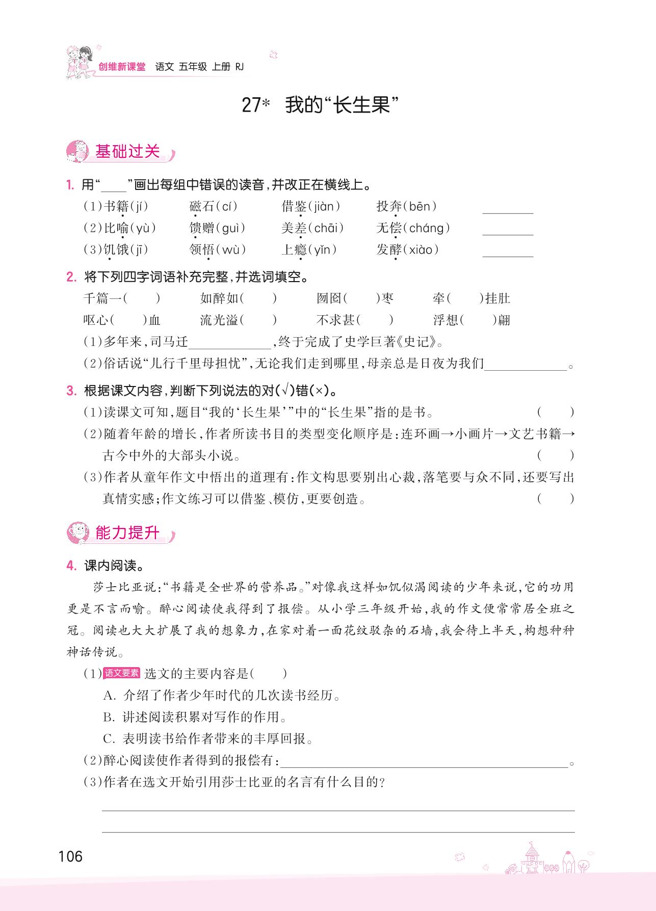 2022上册五年级语文人教版 第八单元——27 我的“长生果”