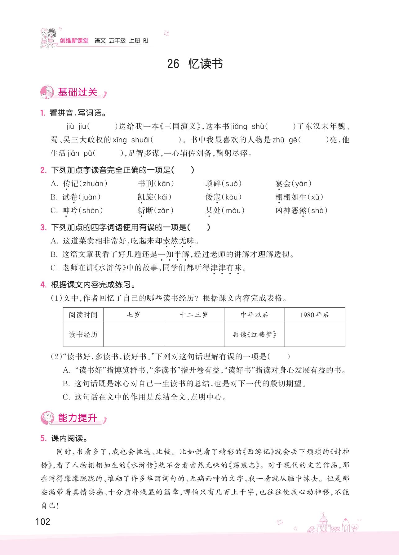 2022上册五年级语文人教版 第八单元——26 忆读书