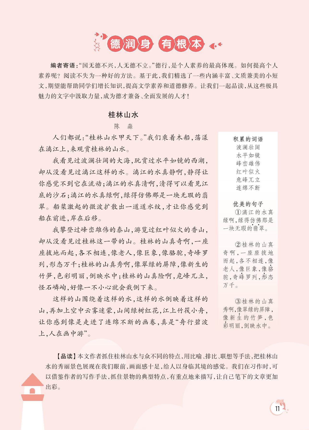 2022上册四年级语文人教版 第一单元 自然之美——德润身 有根本(素养提升)