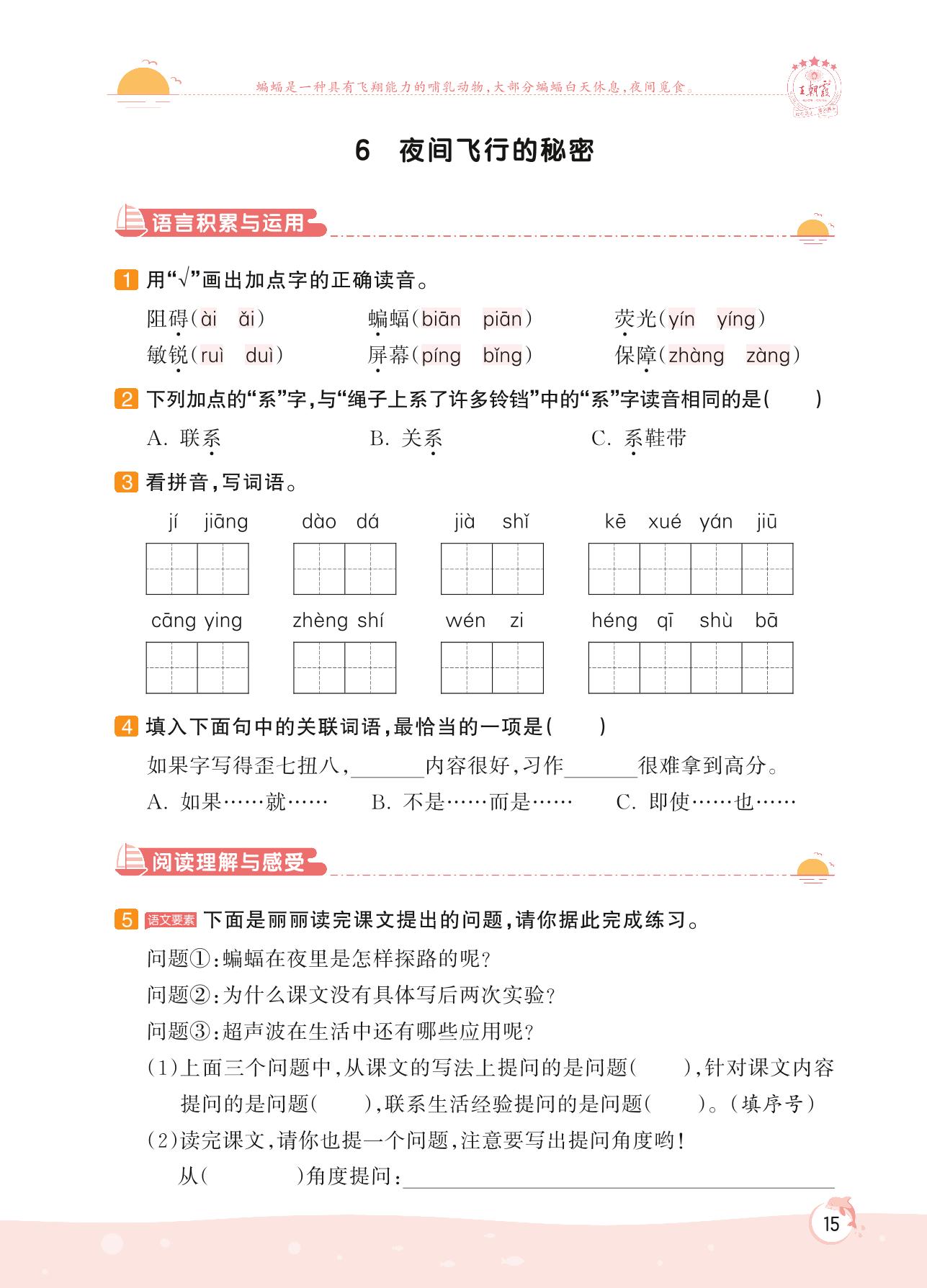 2022上册四年级语文人教版 第二单元 阅读策略 提问——6 夜间飞行的秘密