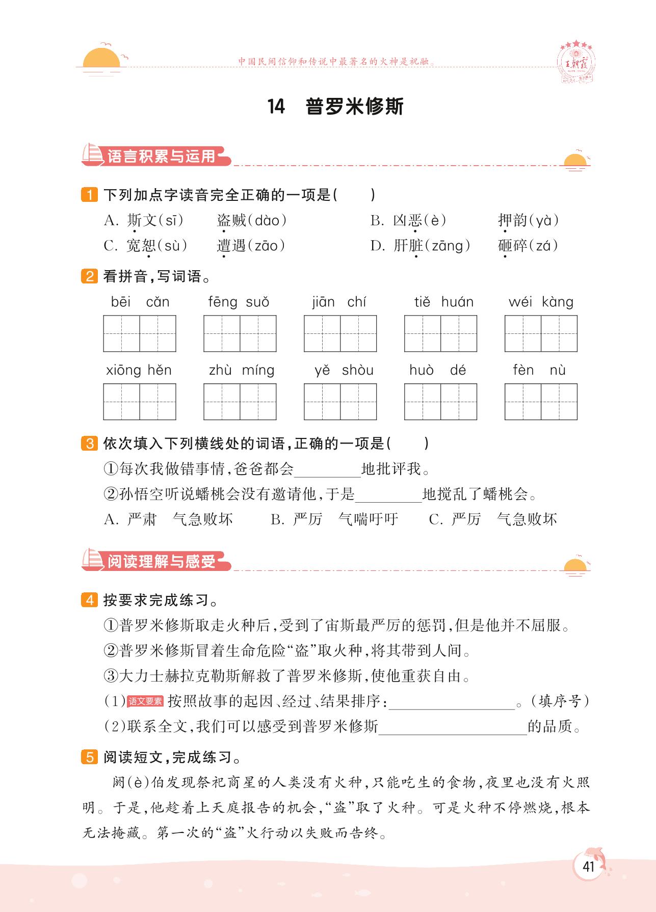 2022上册四年级语文人教版 第四单元 神话故事——14 普罗米修斯