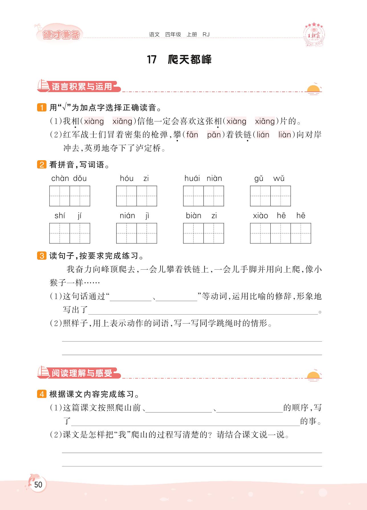 2022上册四年级语文人教版 第五单元 习作——17 爬天都峰