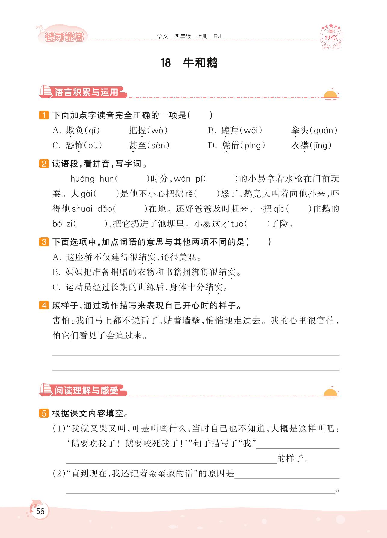 2022上册四年级语文人教版 第六单元 成长故事——18 牛和鹅